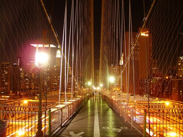 Pues cogí valor, no por la seguridad, que aquí hay mucha, sino por mis piernas y me cruce de noche el puente de Brooklyn. Por la noche no hay casi turistas, porque casi nadie se queda en Wall St. Muy de película verlo de noche y las vistas que desde ahí se tienen de la ciudad.
