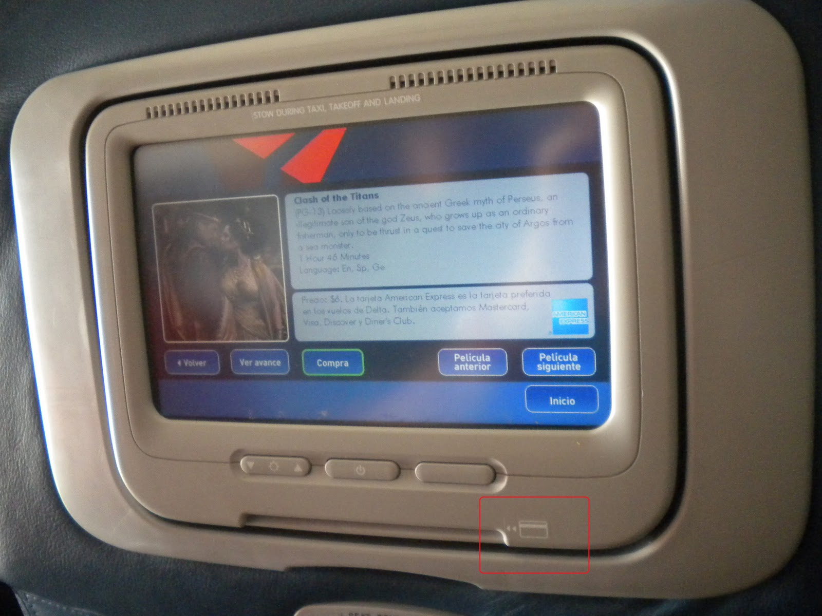 Pese a ser 6 horas de vuelo cualquier cosa que quieras consumir en el vuelo tienes que pagarla. Me había pasado en Europa con vuelos de 2 horas, pero no de 6. Tampoco es mucho problema. No hay película, la tienes que pagar. Frente a mi asiento hay una pequeña pantallita con un lector que te permite escoger entre varias películas a 6$ cada una. Lo mismo si quieres jugar a un juego, el coste es de 5$. La música si es gratis, pero para oírla tienes que pagar , si no te has traido los tuyos (que creo que valen) 2$ por los auriculares, que no están incluídos si pagas la película.