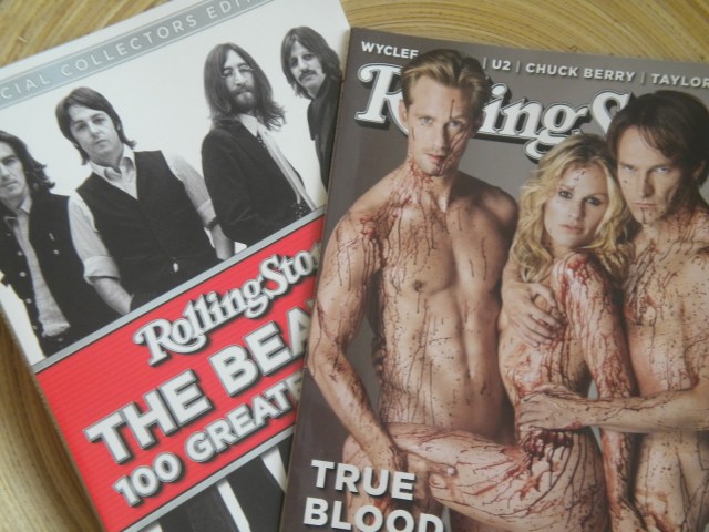 Un par de revistas Rolling Stone. Una lleva la famosa portada de la serie True Blood de la que he visto algunos episodios. No me entusiasma pera me parece infinitamente mejor que una conocida saga cinematográfica de vampiros. La otra es un especial dedicado a los Beatles que merecería mucho la pena que tuviera versión en castellano ya que repasa sus 100 mejores canciones ¿Sabéis cual es la tercera? Mi favorita y mis lectores habituales ya sabrán cual es.