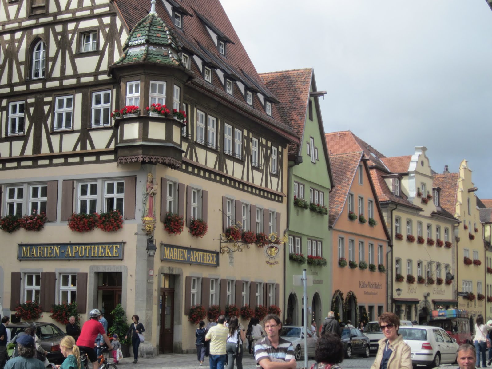 Parada obligada en la Ruta Romántica, recorrido que me han recomendado pero del que sólo tocaré una parte, es este pueblito medieval digno escenario de cualquier cuento de hadas. El referente más inmediato que me ha venido a la cabeza es nuestra Pedraza (Segovia) por su configuración aunque la alemana se diferencia de aquella en sus coloridas fachadas, las casitas típicas alemanas y el acceso de los coches de los lugareños. Tiene la típica plaza con reloj de carrillón y lo más característico son sus tiendas de adornos navideños.