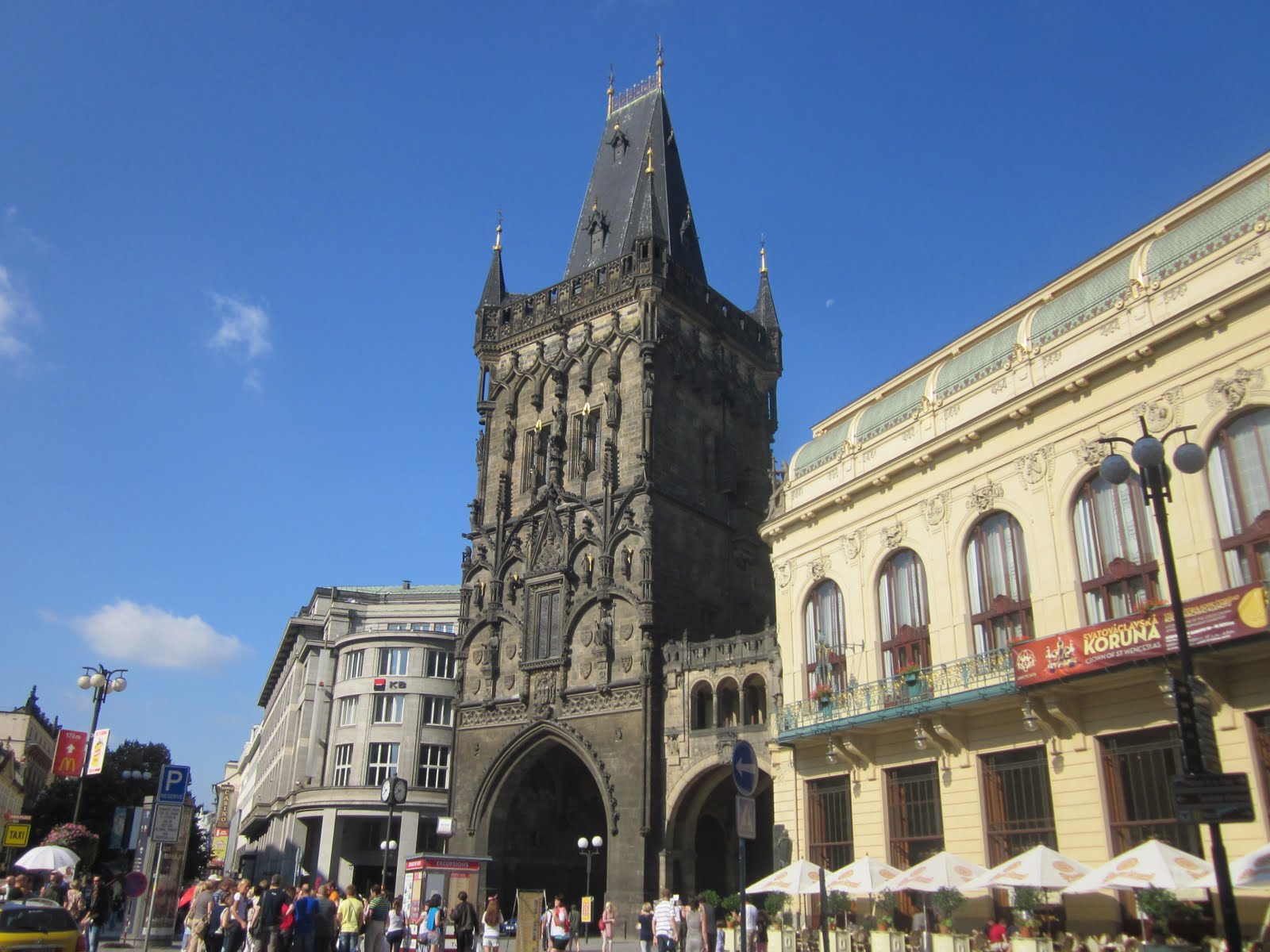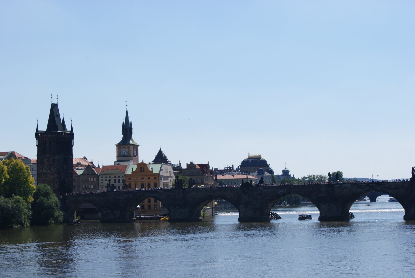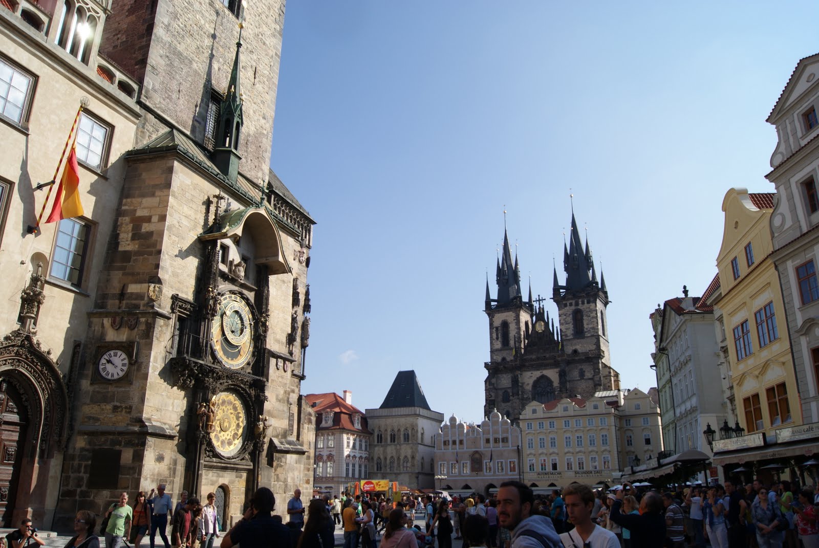 El recorrido turístico lo hemos comenzado en la Puerta de la Pólvora, la más famosa de las 13 entradas para acceder a la ciudad vieja. Hemos ido hasta la plaza donde encontramos las primeras iglesias (de las muchas) que nos toparemos por el camino, la de Nuestra Señora de Tyn, rodeada de edificios que posibilitan su acceso solo por un estrecho pasillo y la de San Nicolas Stare Mesto. Un poco más adelante está el Ayuntamiento Viejo con un famoso reloj con carrillón que es una imagen muy típica de la ciudad. Luego hemos hecho la calle de Carlos (Karlova) para llegar a otro punto representativo (a lo mejor el más) de la ciudad: El puente de Carlos IV sobre el rio Moldava. Un puente de piedra que Carlos IV encargó en 1357 y que está poblado de esculturas de santos. Está flanqueado por dos torres que se pueden visitar (previo pago, of course).