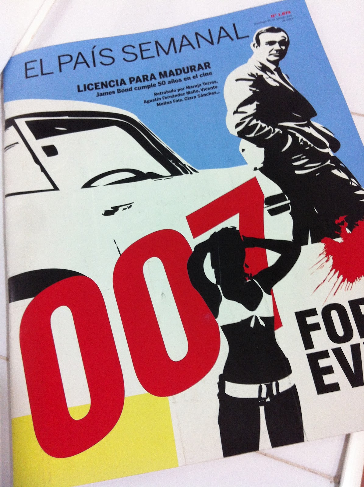 Con una portada que es puro arte pop, El País Semanal ha dedicado esta semana a James Bond todo el protagonismo. Vicente Molina Foix, Boris Izaguirre, Gregorio Belinchón, Agustín Fernández Mallo, Clara Sánchez y Raquel Sánchez Silva eligen a su Bond preferido analizando a los 6 actores que han dado vida al más glamuroso agente británico.