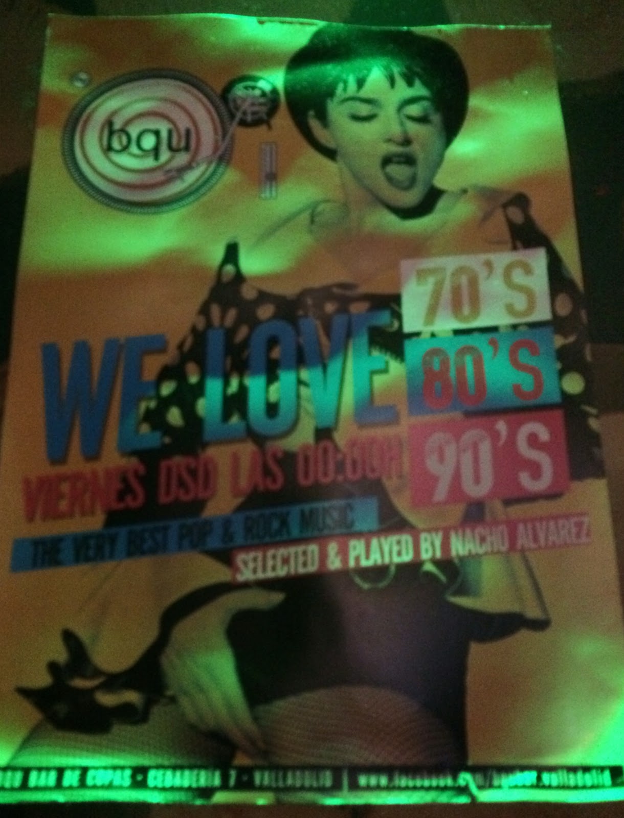 Había que bajar la copiosa cena y por lo tanto fuimos en busca de un lugar donde bailar un rato. Los soportales del centro de la ciudad nos protegieron de la lluvia hasta llegar a los primer bar, Bqu, al que entramos al oír la música que tenían y al ver este cartel.