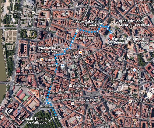 Todo lo que escribí sobre la plaza mayor lo sé gracias a ella, igual que he conocido la fisionomía de la ciudad, sus principales iglesias, las tradiciones vallisoletanas, el lugar donde se celebra el importante Festival de Cine (Seminci) de la ciudad y otros puntos de interés. El mejor momento de todo el recorrido fue cuando en la puerta de la catedral soltó el siguiente speech: