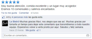 Toda la semana enviándome correos con Chuchi (¡Gracias!) hicieron que la cena en Le Bistró resultara un éxito. Cerré con el restaurante un menú de grupo con el que todos quedamos muy satisfechos. Otra vez gracias a la recomendación que me llegó, como en el caso de Otras Luces, a través de mi hermano. Le Bistró es un restaurante de comida internacional que ofrece sus elaborados platos en unos salones situados en una bodega totalmente rehabilitada del siglo XIX que lo convierten en un lugar muy acogedor para una cena entre amigos. Pedimos platos tan sugerentes como lasaña de langostinos, timbal de la bacalao, noodles thai o hamburguesa parisien y tomamos unos deliciosos postres que incluían tartas y sorbetes. La atención fue genial y todo salió de maravilla (¡menos mal!) Es un lugar en el que pienso repetir la próxima vez que me vaya para Pucela y que ya he recomendado en Facebook o TripAdvisor.