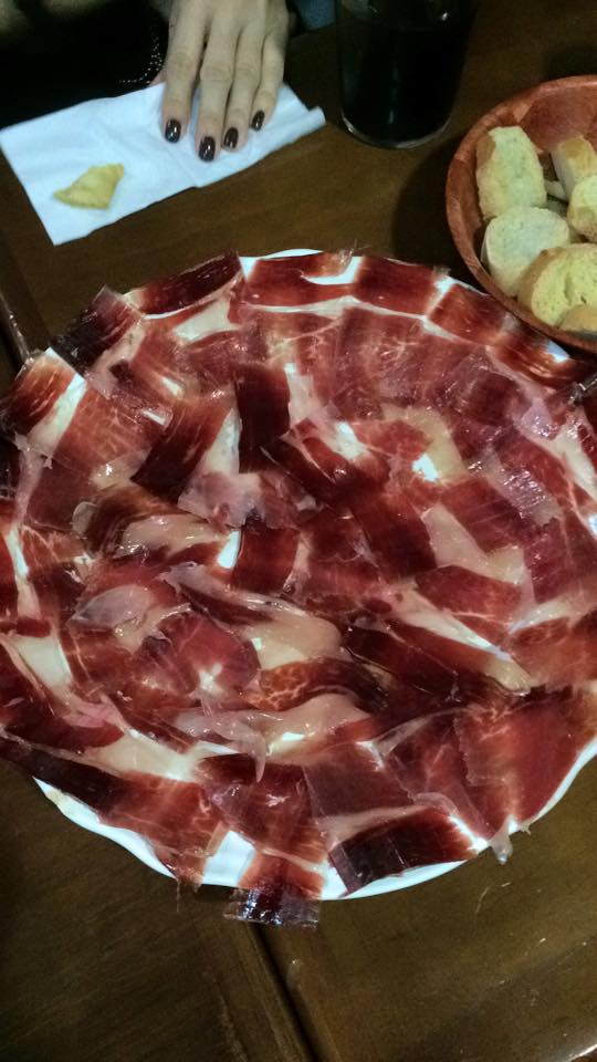 El sábado fue el día de hacer la visita turística obligada por las ruinas y el museo para después parar a comer no fuera a ser que muriéramos de inanición. Un taxista nos recomendó ir al restaurante de Nico Jímenez y nunca le estaremos lo suficientemente agradecidos. Aunque ninguno tuviésemos ni idea resultó que el Sr Jimenez, que nos saludo y se sacó una foto con nosotros, es todo un referente en el mundo del jamón extremeño. 2 Records Guiness y múltiples apariciones televisivas pueden ser la parte más superficial de un señor que tiene un restaurante estupendo con precios muy asequibles y que se dedica a comercializar productos gourmets y a hacer cursos de formación sobre sus productos. ¡Bravo por él! Recomendado para quienes se pasen por Mérida. De allí es esa imagen que no me logro quitar de la cabeza, y que insisto en repetir.