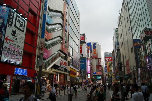 Akihabara nos sorprendió más por los colores, la actividad, los locales y los dibujos que por la tecnología en sí. Lo digo porque aunque vimos mucha no nos pareció ningún chollo asi que ninguno picamos. Lo que si nos encantó fue perdernos dentro de galerías llenas de comercios vendiendo todo lo que se puede vender en tecnología. Hay tanto que ver, tanto en que fijarse que me extraña que no acabara con un terrible dolor de cuello de tanto girar la cabeza.