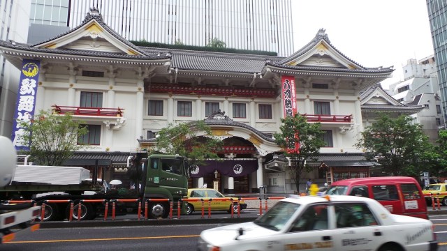Nuestra primera parada de la mañana fue el mercado central del pescado de Tokio. El mercado de Tsukiji es el mercado de pescado más grande del mundo y todos teníamos mucha curiosidad en conocerlo. De camino pasamos por la puerta del Kabuki-Sa, el teatro dedicado al Kabuki (típica representación Japonesa) pero solo nos detuvimos, no eran horas, a hacer un par de fotos a su singular fachada.