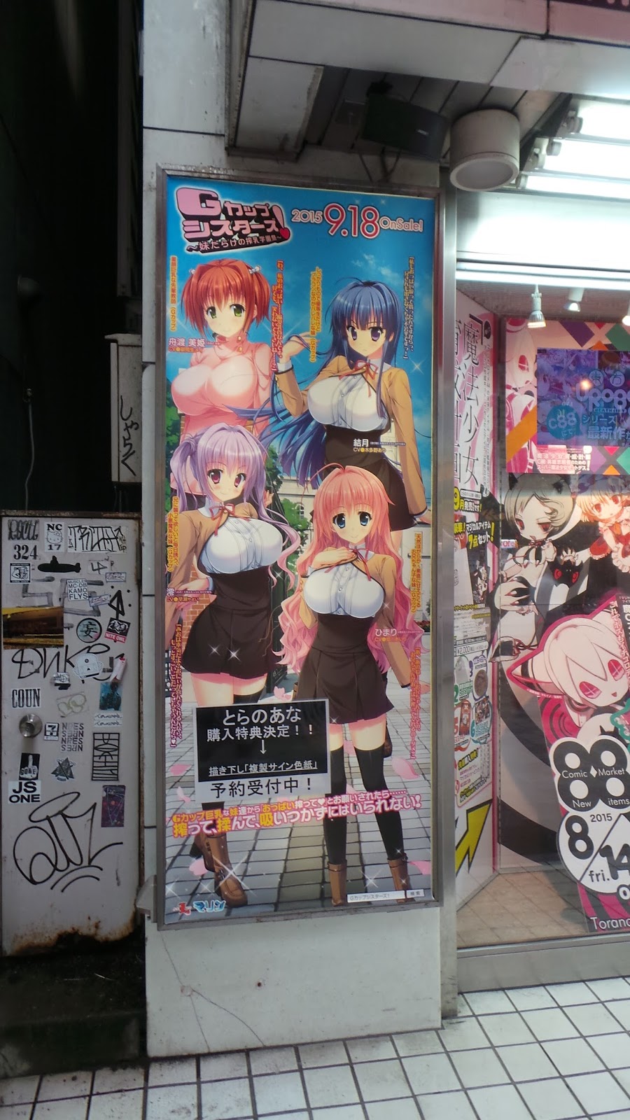 La electrónica convive con el manga, así se pueden encontrar cientos de locales dedicados a este arte. Pudimos entrar en tiendas que vendían cómics, figuras y videojuegos y debo reconocer que aquí si estuve tentado a picar, pero me contuve. Sentí cierta envidia de los aficionados al cómic en Japón, esta tan metido en su cultura que es fácil de encontrar en cualquier lugar. Hay mangas muy blancos, los hay apocalípticos, realistas y, de los que más triungan, los algo subiditos de tono sin llegar a ser Hetai (porno). Mirad la ilustración de las muchachitas de aquí abajo, deben de tener un terrible dolor de espalda….