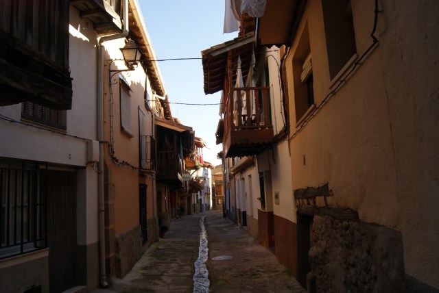 En cuanto a Valverde de Vera es un pueblo de sólo más 500 habitantes y que tiene todo el encanto de un pueblo medieval. Nos pareció un lugar fantasma pues no nos cruzamos prácticamente con nadie, pero estuvimos encantados de poder tenerlo solo para nosotros. La cantidad de agua que hay en la Vera, que sale de las montañas, está muy presente en este lugar donde las calles tienen un canal central donde discurre la misma. La construcción, el sonido del agua, las calles estrechas, los balcones… convierten al pueblo en un lugar encantado y que el turismo, que es mucho por la zona, ha sabido respetar.