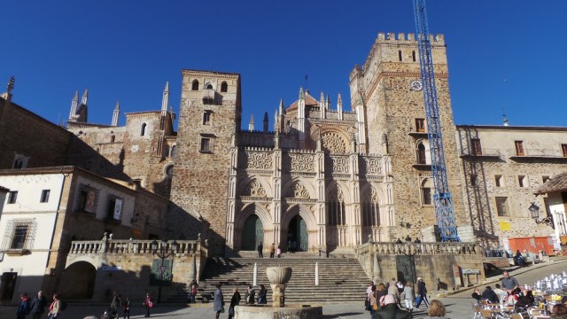 Se encuentra justo enfrente del Monasterio de Guadalupe, que nada tiene que ver con el de Yuste. En absoluto es austero, como el anterior, y atesora muchísimas obras de arte entre las que hay un impresionante museo de bordados, colección de libros de oración y pinturas de Zurbarán, El Greco o Goya. Impresionante edificio en el que se aprecian todos los corrientes que se dieron entre los siglos XIII y XVIII (Gótico, mudéjar, renacentista, barroco y neoclásico), fue declarado Patrimonio de la Unesco en 1993 y solo se puede visitar acompañado por un guía o un fraile, según sea la instancia que se visita.
