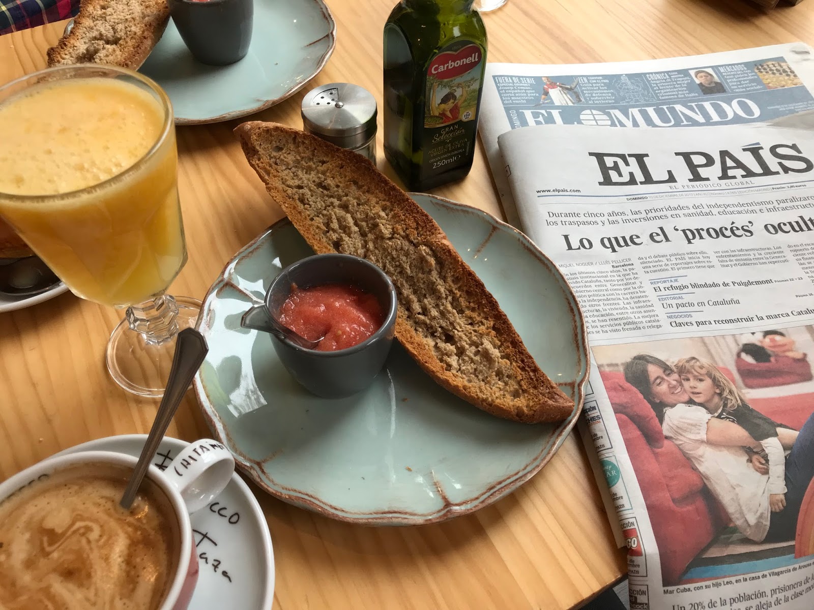 De allí, lo sabrán quienes me sigan por Instagram o Facebook, es habitual que vaya a parar a Lekker, una coqueta cafetería especializada en cafés y tartas que tiene unos desayunos estupendos. Es un local que nada tiene que envidiar a los que se pueden encontrar en zonas como Malasaña o el Barrio de las letras. La chicas que lo llevan solo tienen que mirarnos para saber lo que queremos (siempre lo mismo) y yo solo espero a tener mi zumo, mi pan de centeno y mi café con leche para sacar la foto correspondiente y colgarla en mis redes.
