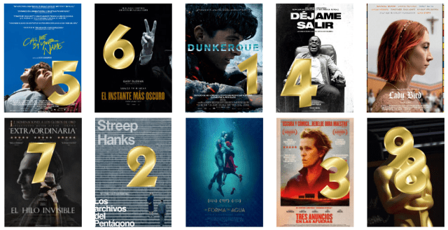 Vistas como comentaba El hilo invisible y Call me by your name, este es por ahora y a falta de Ladybird y La forma del agua, mi orden de preferencia (que no mis apuestas).