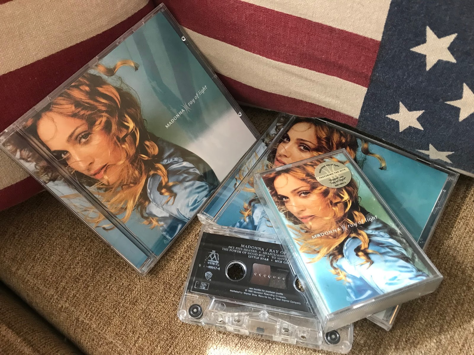 1 hora y 7 minutos, aproximadamente, de un disco que no ha dejado de estar nunca en mis reproductores musicales, que escucho muy a menudo y que tengo en todos los formatos, como demuestran las fotos que acompañan este post. Para prepararlo, he vuelto a oírlo varias veces estas ultimas semanas. Ha envejecido muy bien. Las canciones que Madonna, con William Orbit, Patrick Leonard y Marius de Vries, lanzó aquel marzo siguen sonando muy bien en la actualidad. Si no lo has oído, te invito a hacerlo y comprobar por qué se vendieron (cuando de verdad se vendían discos) 20 millones de copias, el tercero más vendido de la cantante pop más popular de todos los tiempos.
