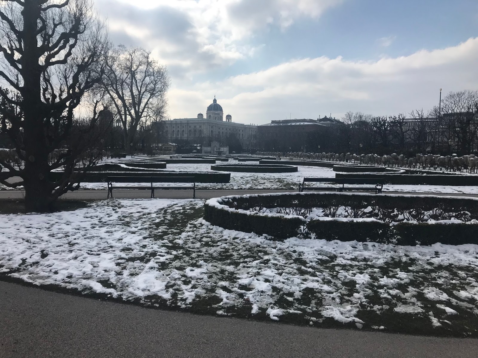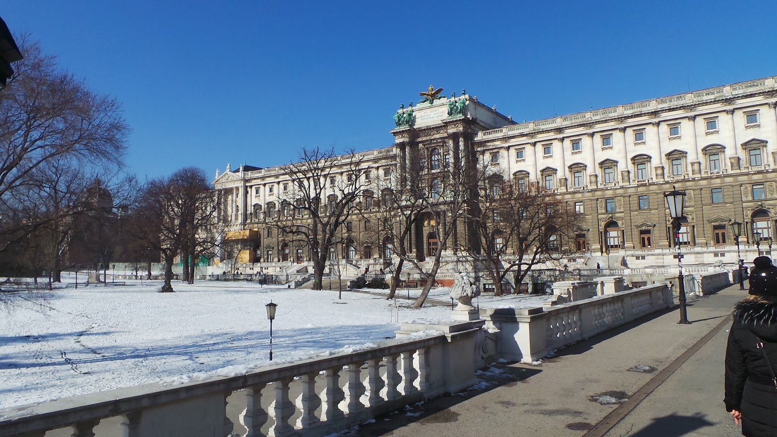 Nuestro sábado comenzó como terminan muchos de mis viernes laborarles en Madrid : En un Starbucks. Con temperaturas bajo cero, un sol espléndido y después de un latte gigante, nos dispusimos a recorrer la ciudad empezando en Mariahilfer, la calle más moderna según la guía (más comercial, se entiende) hasta llegar al monumento a Mozart en el Burggarten, uno de los muchos parques de la ciudad que deben brillar especialmente en primavera pero que estaban realmente bonitos llenos de nieve.