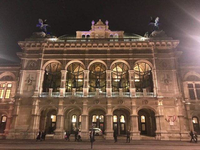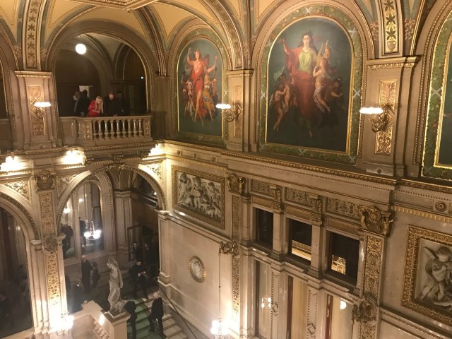 En esos descansos, algo que pude percibir a la entrada, confirmé que en Viena la ópera es todo un acto social. Mucho smoking, mucho traje y mucho vestido largo confirmaron el calado social que tiene la ópera en este país. Claro que había gente que no iba de largo o etiqueta, pero los que si habían acudido vestidos de «fiesta» eran muchísimos. Mi pajarita, ponérsela siempre es algo excéntrico, me permitió estar acorde y hacerme mil fotos de elegancia relajada en uno de los sitios más elegantes del planeta.