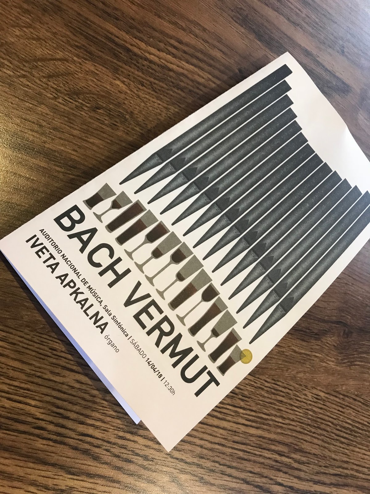Una vez al mes se celebra en el Auditorio Nacional de Madrid un curioso evento llamado Bach Vermut que consiste en asistir a un concierto y luego tomarse algo en el propio Auditorio mientras suena, en el caso de aquel sábado, un grupo de Jazz tocando música de Bach. Aunque había estado muchas veces en el Auditorio nunca los había hecho con una propuesta tan original.