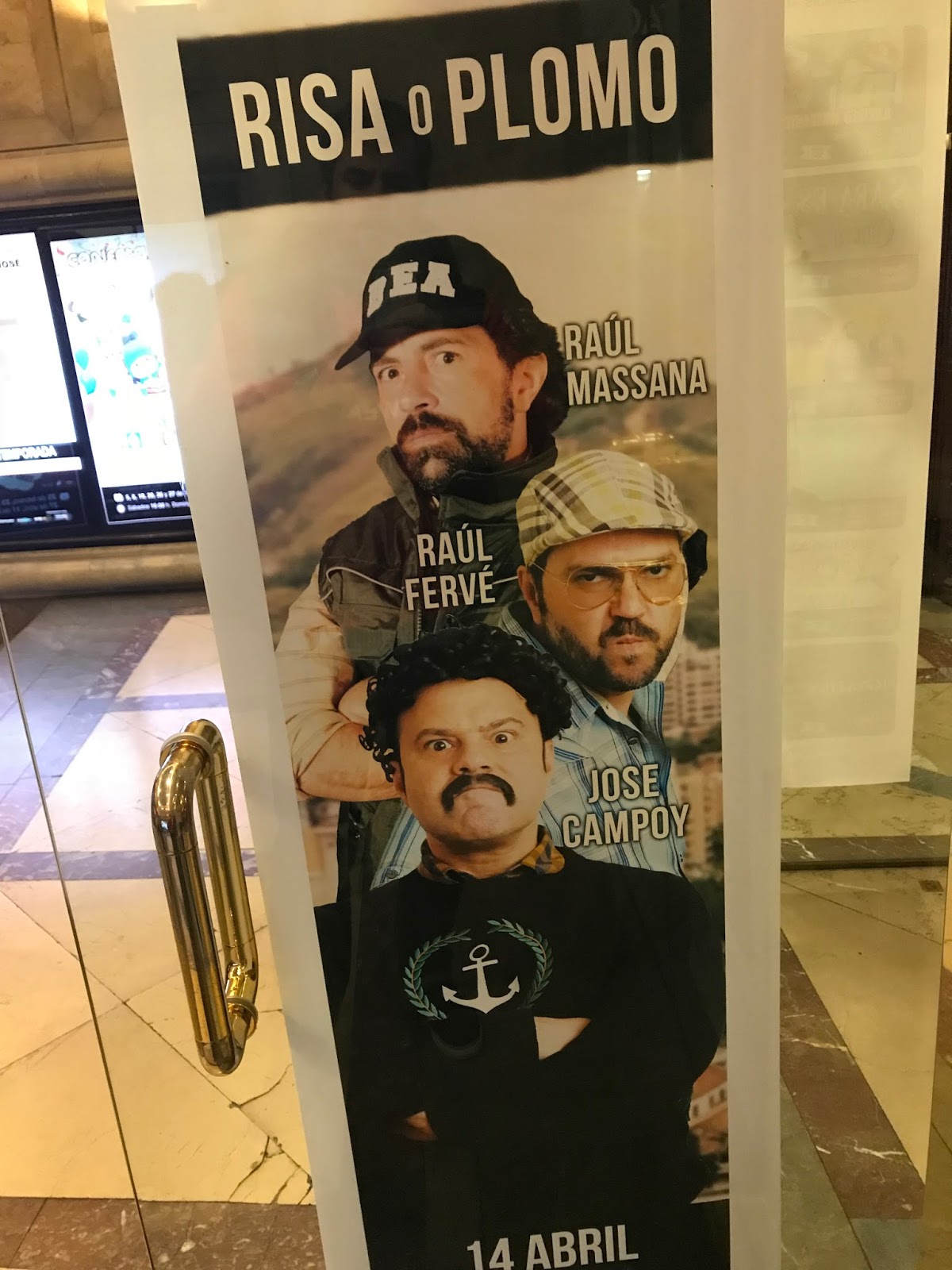 Risa o Plomo es un espectáculo en que los humoristas y monologuistas Jorge Campoy, Raúl Fervé y Raúl Massana utilizan como hilo conductor los personajes de la serie para introducir sus monólogos. Durante algo menos de 2 horas asistes a un espectáculo bastante voluntarioso en el que encuentras auténticas joyas del humor, como es disertación de la música indie (que me hizo llorar de la risa) de Massana o sobre los tópicos andaluces, ahora que conozco aquella tierra mejor, que cuenta el jerezano Jorge Campoy.