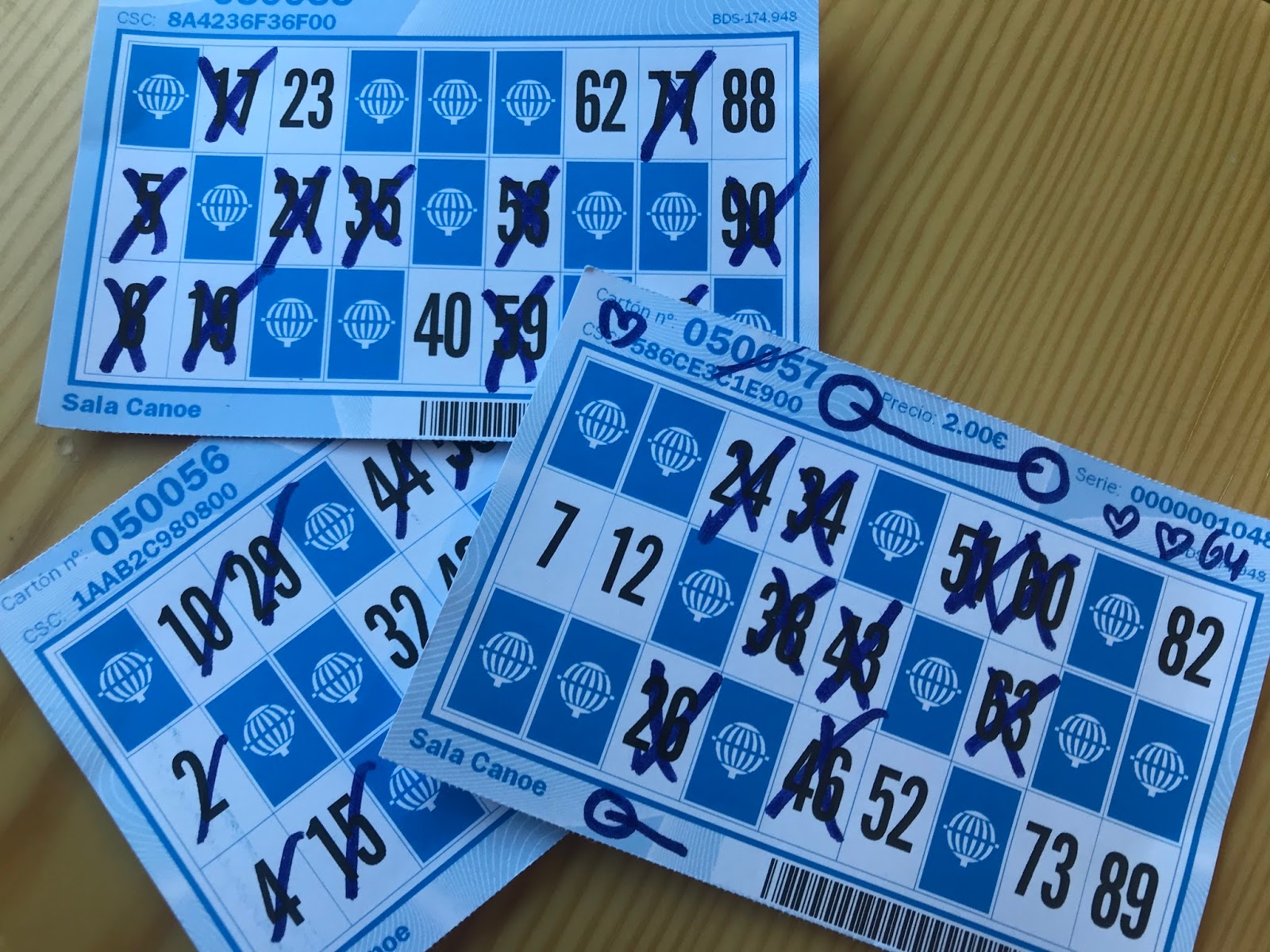Cada hora el Bingo Canoe tiene un super bingo de 1000, 2000 (el de los euros pelaos) e incluso uno de 10.000 euros por lo que empecé a entender lo llena que estaba la sala. Perdimos todo, pero nos echamos unas risas. 2000 euros pelaos es ya una de mis frases de referencia.
