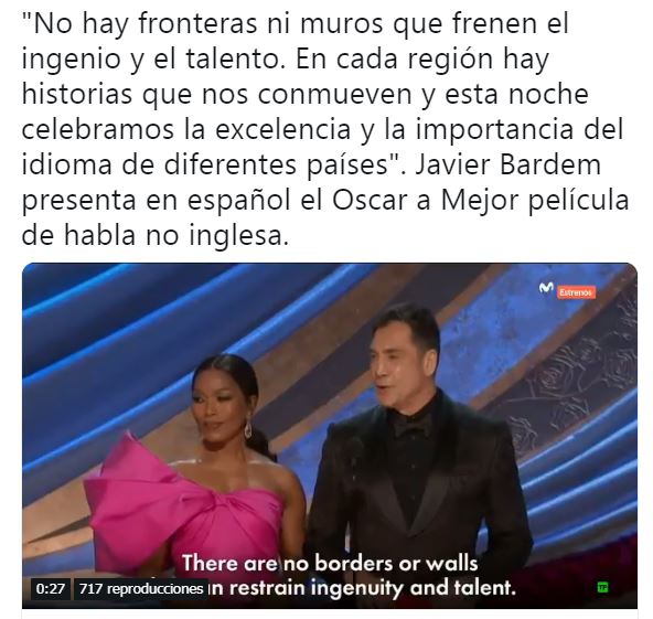 Diego Luna y el cocinero José Andrés presentan el clip de Roma y dan, por el momento, el mejor discurso de la noche.