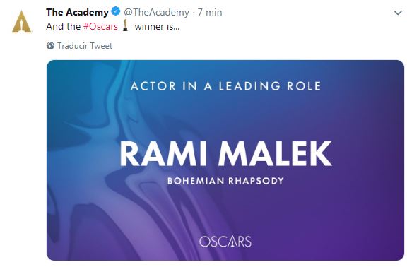 El premio se lo lleva Malek, que era uno de los favoritos. No el mío, yo me quedo con Mortensen o Bale. Bohemian Rhapsody se lleva el cuarto Oscar.