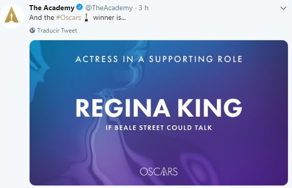 Mi favorita era Amy Adams, 6 nominaciones pero las ganadora es Regina King, la favorita de todas las quinielas por una película en la que ella es lo mejor. Amy, tendremos que esperar un año más.
