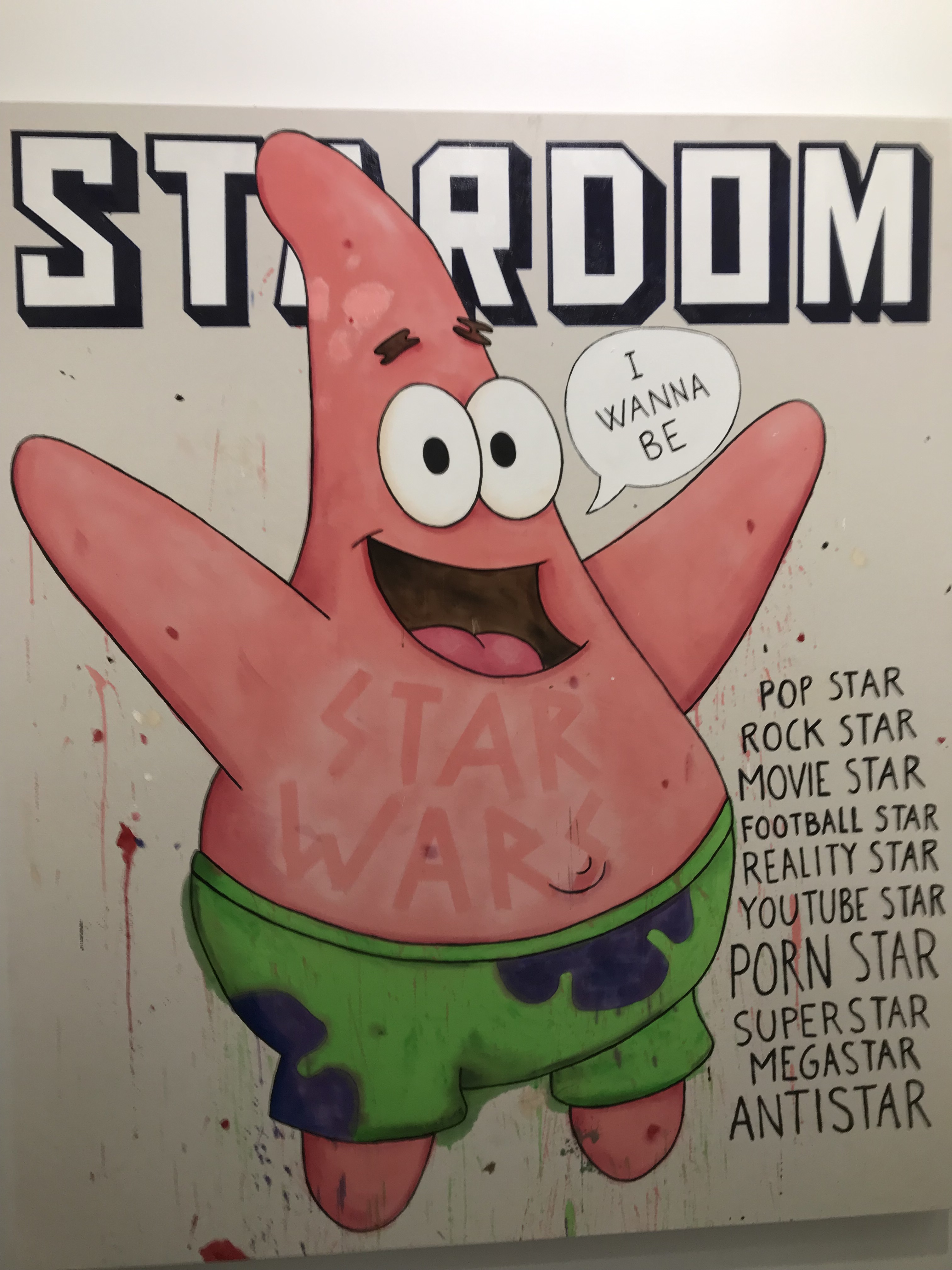 Ocupando los pabellones 7 y 9 del recinto ferial, el lugar era una constante sucesión de estímulos a los que fue difícil resistirse. Nada más entrar oímos las primeras reacciones ante cuadros monocromáticos, bien en blanco, bien en naranja, bien en azul…pero yo me quedé prendado del arte de Riiko Sakkinen, un artista finlandés, que desde nuestro Toledo explora la cultura contemporánea en obras tan atractivas como Stardom o Flyings Thigs, que presentaba la galería finlandesa Forsblom.