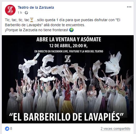 Este viernes 12 de abril una iniciativa estupenda busca dar difusión a un género que yo como aficionado disfruto mucho y que recomiendo a cualquiera para su inicio en el mundo de la lírica. A las 20.00 horas se retransmitirá desde Facebook Live, YouTube y en la propia web del Teatro esta magnífica zarzuela que merece, de verdad, mucho la pena.