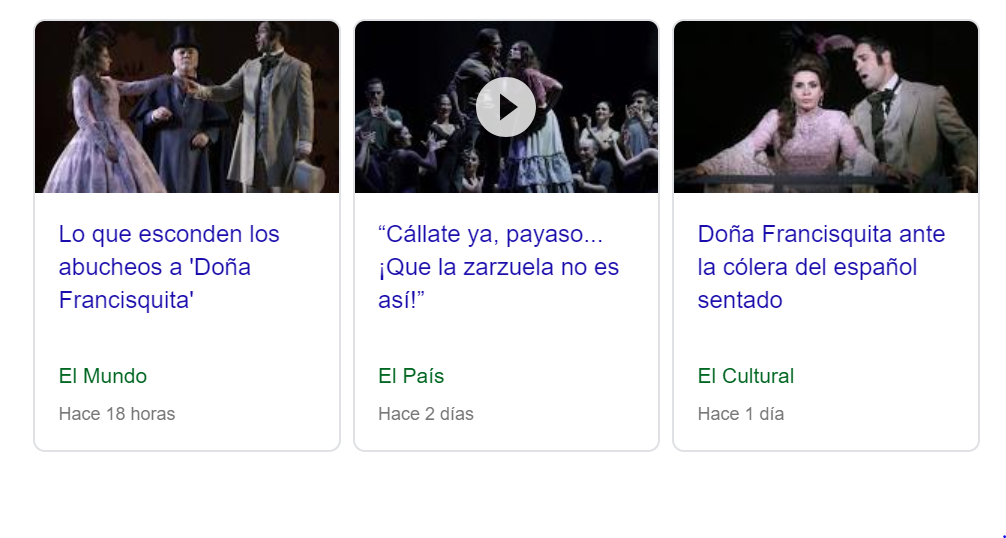 Al buscar hoy mismo una imagen para soportar esta publicación, me he encontrado con tres noticias que iban en el mismo sentido: abucheos, críticas y rechazos ante los cambios en la estructura de la conocida zarzuela. Yo, como ya he comentado, asistí el viernes 31 de mayo a un representación en la que también encontré caras conocidas como los ex políticos Marcelino Oreja e Iñigo Méndez de Vigo, que la disfrutaron, o eso creo, a pocos metros de mí.
