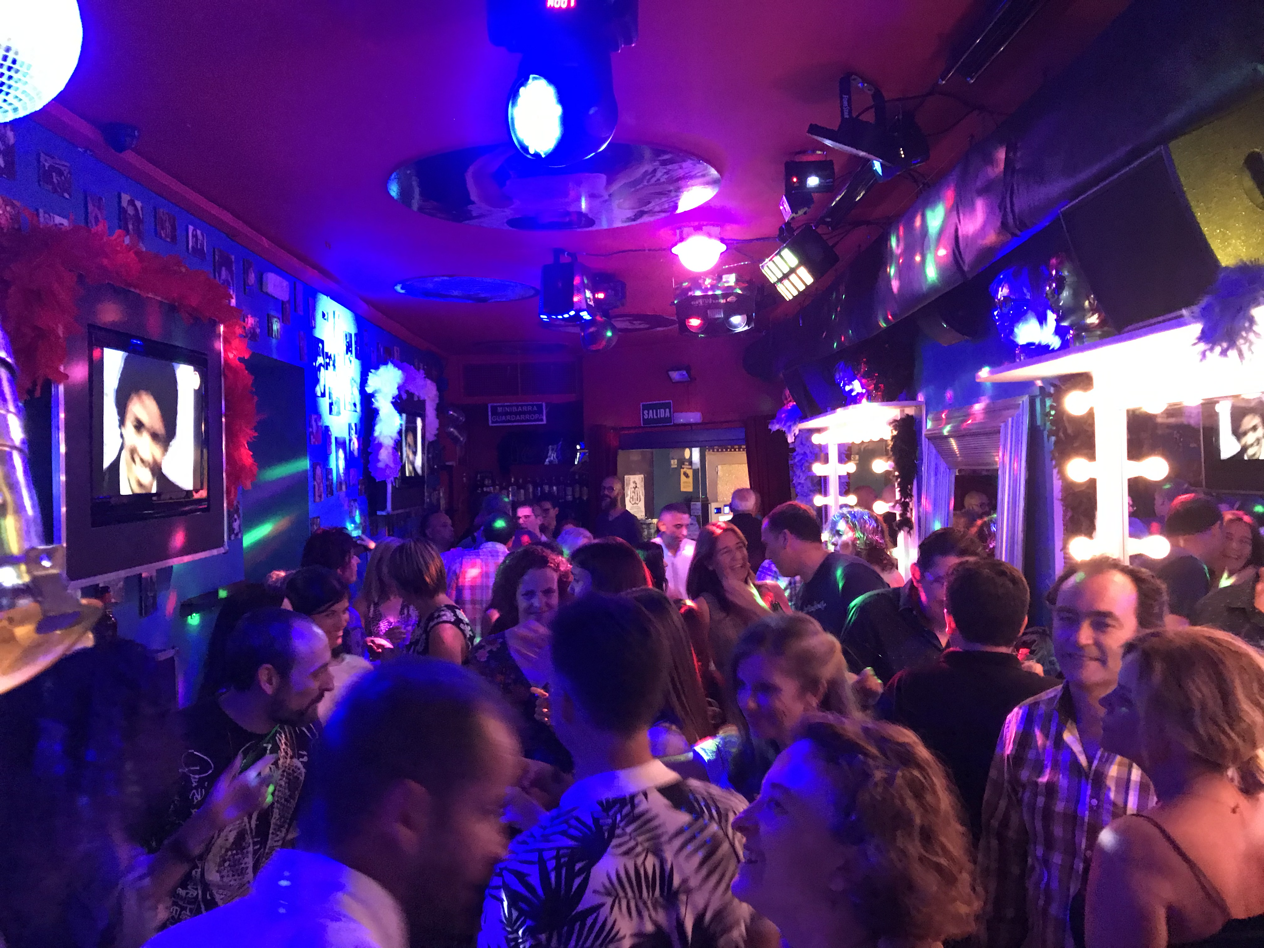 En Madrid hay algunos parecidos, pero los que he conocido no tienen la gracia de este. Esta muy iluminado y plagado de referencias a la música pop de los 70, 80 y 90 con fotos y recortes de prensa que llenan las paredes de todo el local. Se pincha con videos que aparecen en varias pantallas y cuya música es lo más variada posible dentro de las décadas ya comentadas. El público es variopinto y es el típico local que se llena cuando los demás se ven abocados al cierre. Una curiosidad de la noche Sevilla que es, tengo que admitirlo, divertidísimo. Otro de mis placeres culpables (y ya van…).