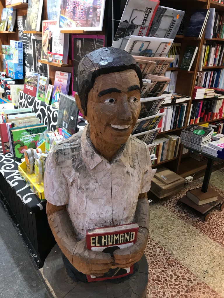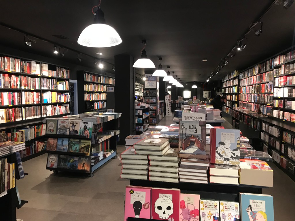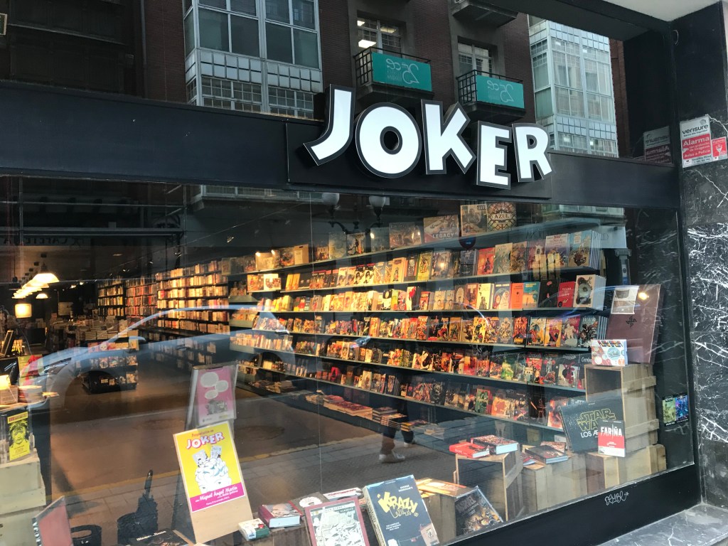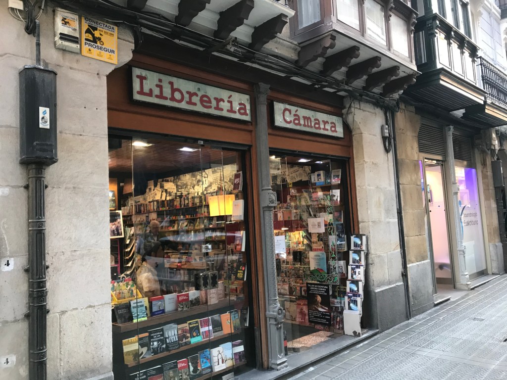 Quería conocer, la había visto por internet, la librería Cámara en la calle Euskalduna y hasta allí fuimos para encontrarnos, como bien dicen a quienes he consultado, con una librería llena de encanto en la que podría perderme horas. Me gusta su aire de librería clásica y su techo de color rojo, su increíble catálogo y su aspecto de gran biblioteca. Me quedé enamorado. Justo enfrente está Joker, una librería de cómics enorme. Estoy acostumbrado a visitar las de Madrid, pero no conocía ninguna tan grande. Si hubiese llegado antes, eran casi las 2 de la tarde, hubiese perdido horas allí. Presiento que, de vivir en Bilbao, Euskalduna sería una calle que visitaría frecuentemente.