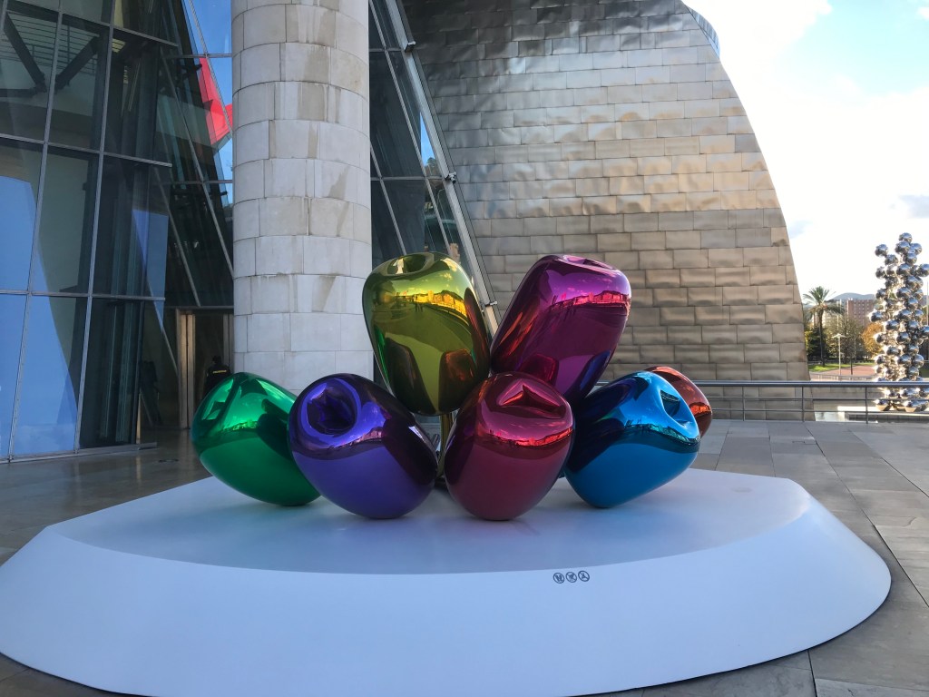 Desde 1997 cuando abrió sus puertas, el Museo Guggenheim ha cambiado la configuración de la ciudad en cuanto a que el edificio ideado por el arquitecto Frank Gehry es tan icónico en Bilbao como la Torre Eiffel en París o La Puerta de Alcalá en Madrid. Aunque no tuviese ninguna obra de arte en su interior, el museo ya lo es en sí mismo. El fondo de arte moderno y contemporáneo que tiene: Serra, Koons, Warhol, Basquiat, Rothko, Chillida…ya es suficiente para visitarlo y siempre tiene interesantes exposiciones de las que disfrutar. Obviamente, es increíble que la gente aún se lo pregunte, no se pueden hacer fotos dentro de las galerías por lo que comparto las que sí se pueden hacer a algunas obras como los tulipanes de Koons o los paneles de Jenny Holzer.