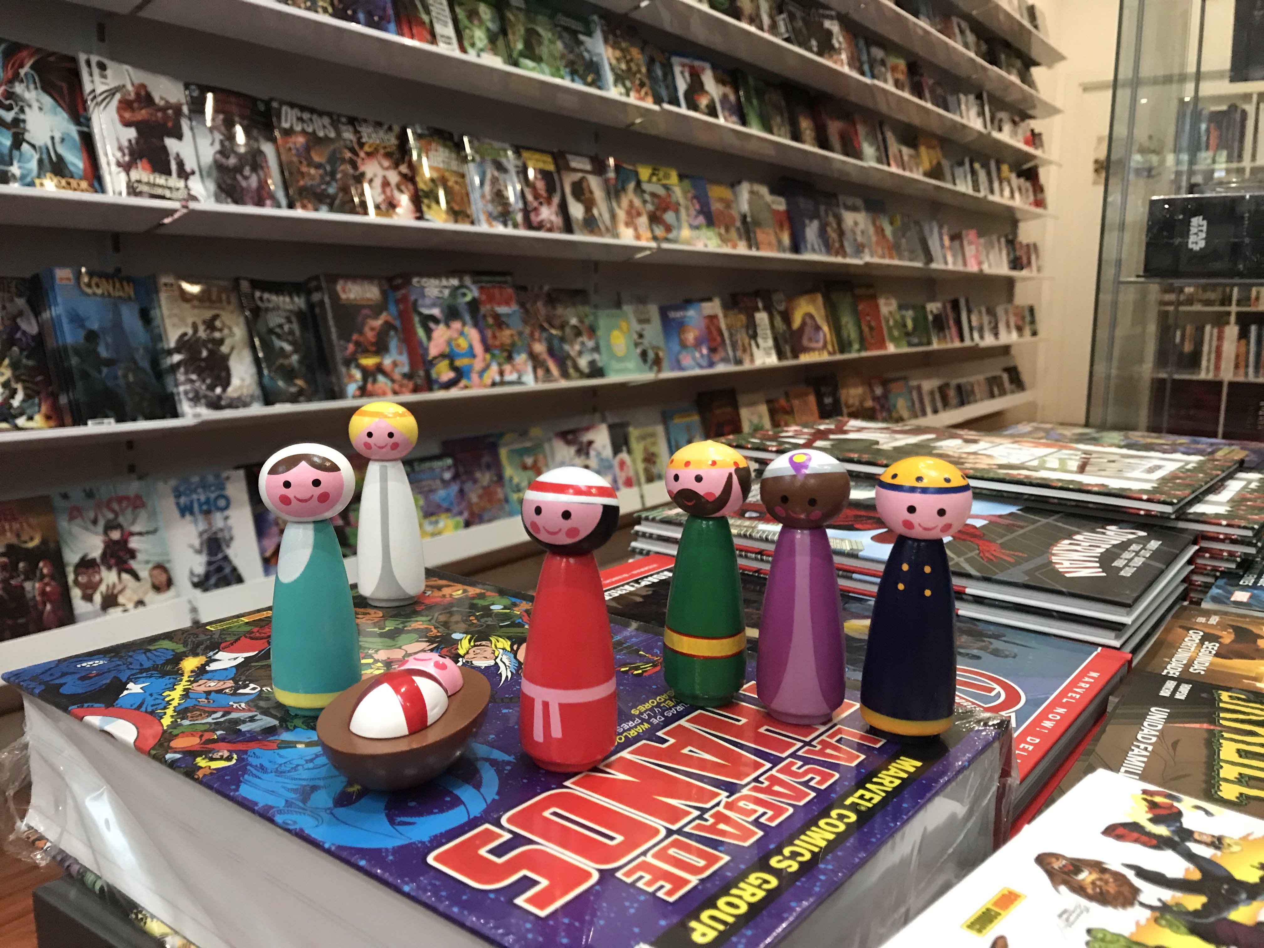En la librería Atom Cómics. Encima del tomo de La Saga de Thanos (Panini Comics) y con un fondo que es visita obligada muchas veces al año.