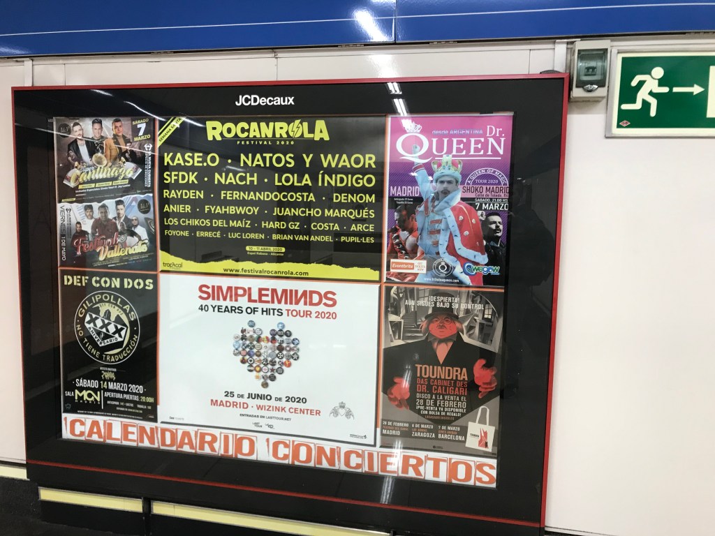 A unos metros del cartel hay otro que siempre anuncia conciertos. Debe tenerlo contratado un mismo anunciante que siempre promociona conciertos y eventos que se van a celebrar en la capital próximamente, algo que siempre me ha venido muy bien pues muchos de mis planes culturales salen precisamente de anuncios en el metro. Este es el cartel en cuestión: