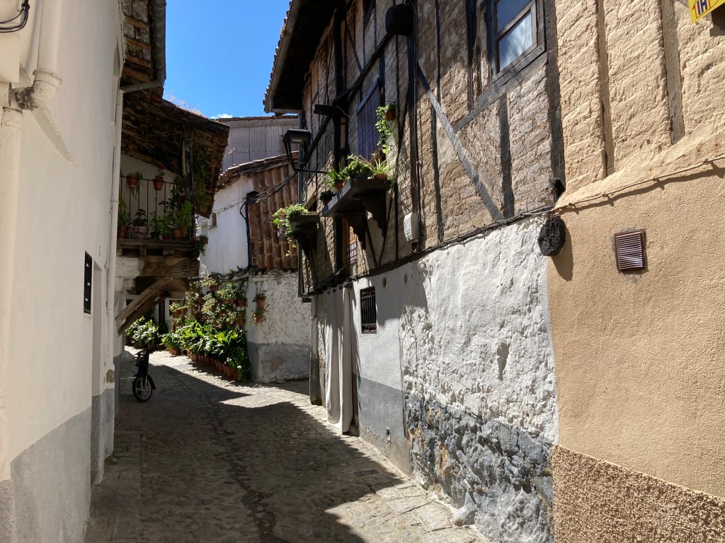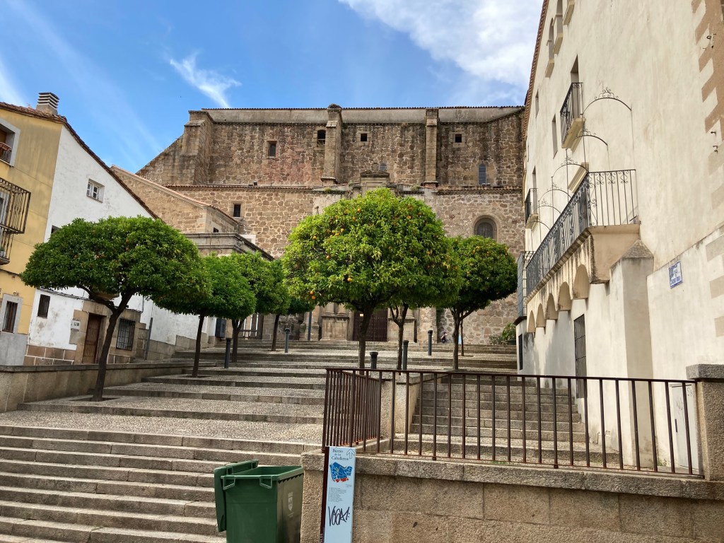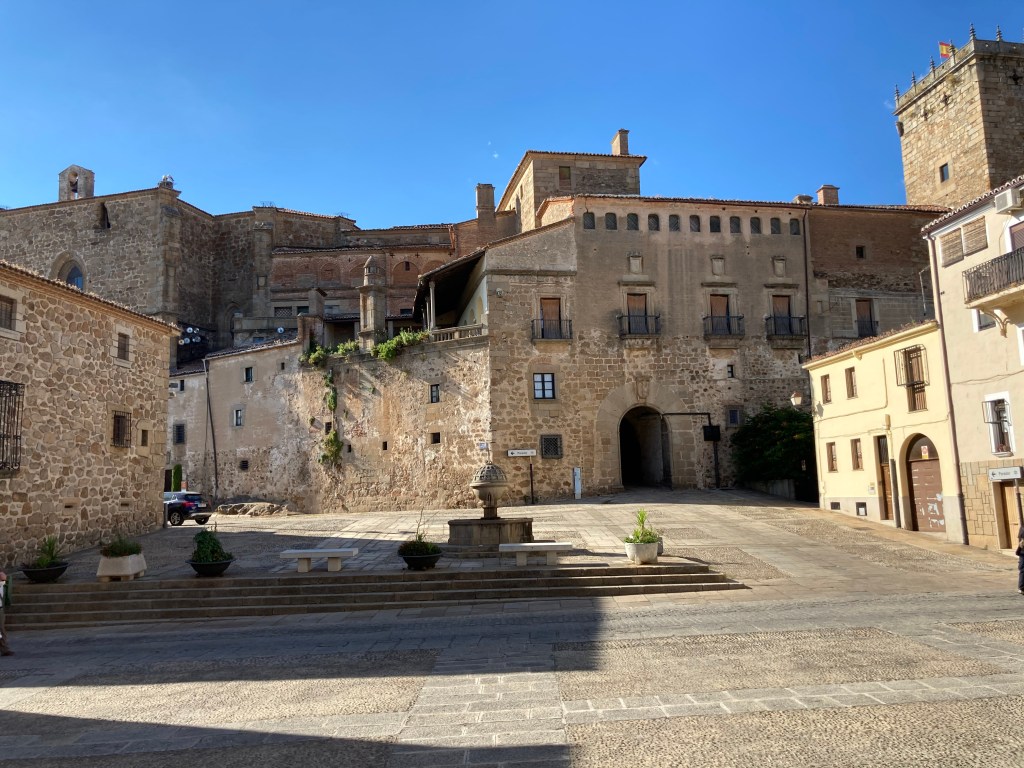 Una vez bajamos de la montaña y tras reponernos en una agradable terraza de Hervás. volvimos al Parador para disfrutar de la tarde Placentina. No pudimos entrar en la Catedral, no había abierto aún, y vimos su acueducto medieval cuando nos íbamos así que volvimos a disfrutar de sus calles y rincones.