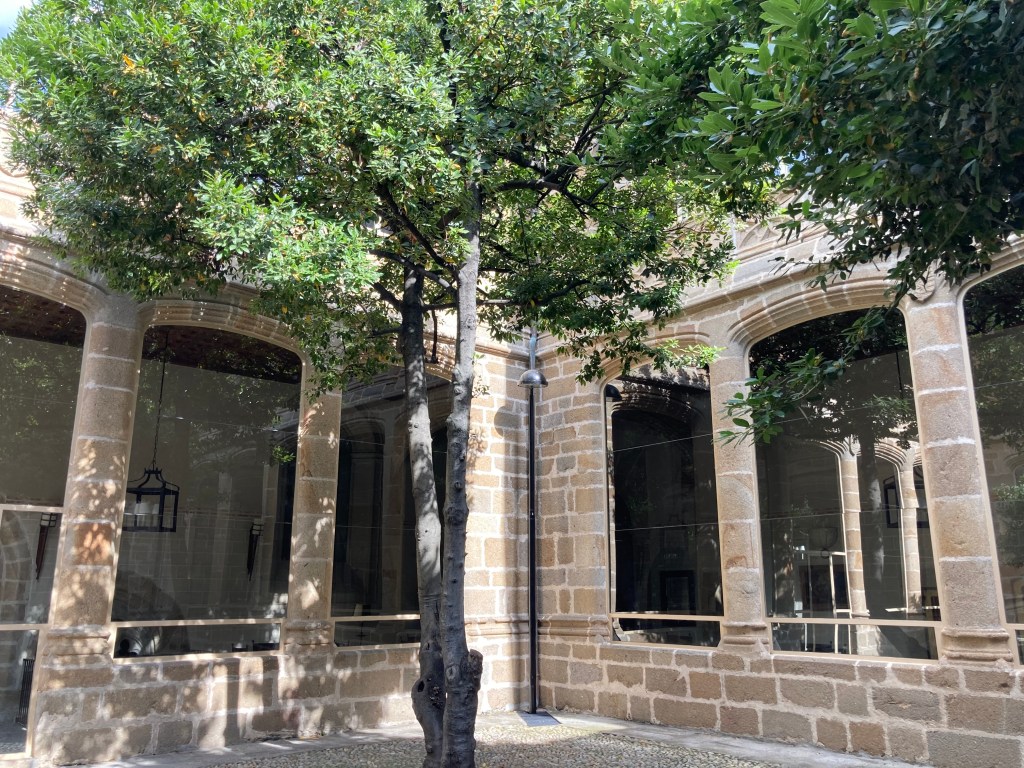 Es un municipio en el norte de Caceres, muy cerca del valle del Jerte y de la comarca de La Vera, que ya visité en una anterior encarnación de este blog y que ha quedado debidamente exportada aquí. En aquella entrada ya hablaba maravillas de los Paradores Nacionales y en esta última escapada he podido pernoctar en otro más, van 3, de los 5 que hay en la provincia. ¿Qué podría añadir sobre los Paradores que no se haya dicho ya? Me entusiasmo cuando llego a cualquiera de ellos. El de Plasencia ocupa un antiguo convento del siglo XV, de San Vicente Ferrer, y las reformas que lo han convertido en hospedaje han respetado su arquitectura gótica original, con amplios pasillos, arcos, patios y un impresionante claustro.