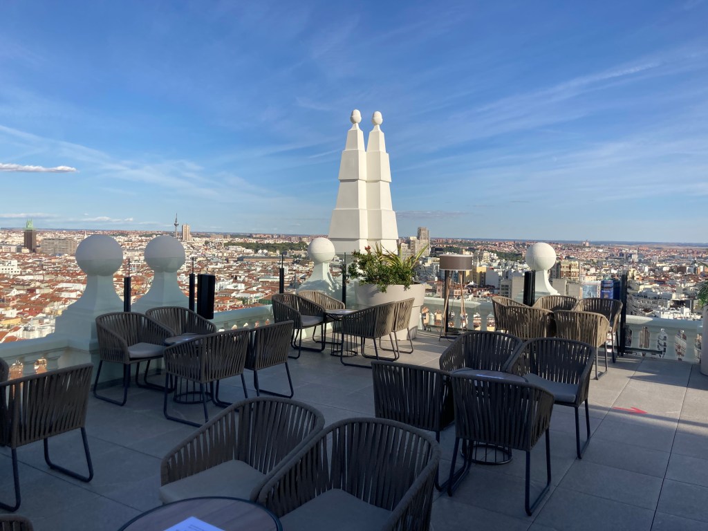 En la azotea hay una terraza, Sky Bar 360°, que se desde el año pasado forma parte de las imprescindibles rooftops que se encuentran en el centro. Es llamativo que se hayan tardado tantos años en encontrar el cielo de Madrid, pero más vale tarde que nunca. No teniendo las 4 Torres Business Area (pronto serán 5) un lugar para el ocio en las alturas, esta es probablemente la terraza más alta de la ciudad y desde allí se obtiene una imagen que hasta ahora era inédita para el común de los madrileños.