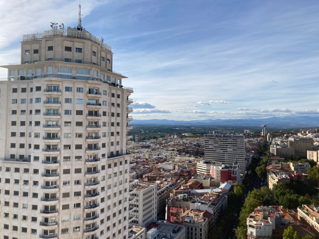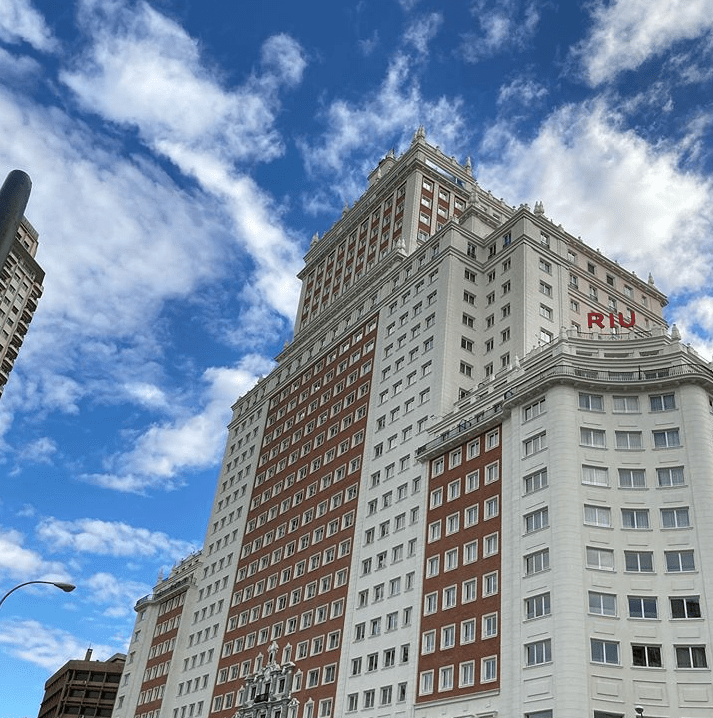 La cadena Rui ha ocupado finalmente ¡menos mal! El edificio España manteniendo su arquitectura. Parece mentira que hubiese quien, en favor del progreso, quisiera derruirlo. Se inauguró en 1953 y fue entonces el edificio más alto de Madrid. Durante años ha estado degradado y figura como una de las señales más inequívocas, junto a su vecina Torre de Madrid, de la ciudad. Sencillamente no concibo Madrid sin él y me alegro de que vuelva a tener actividad, aunque esta sea un hotel de cuatro estrellas que, como todos, estará viviendo horas bajas estos días de cierre.
