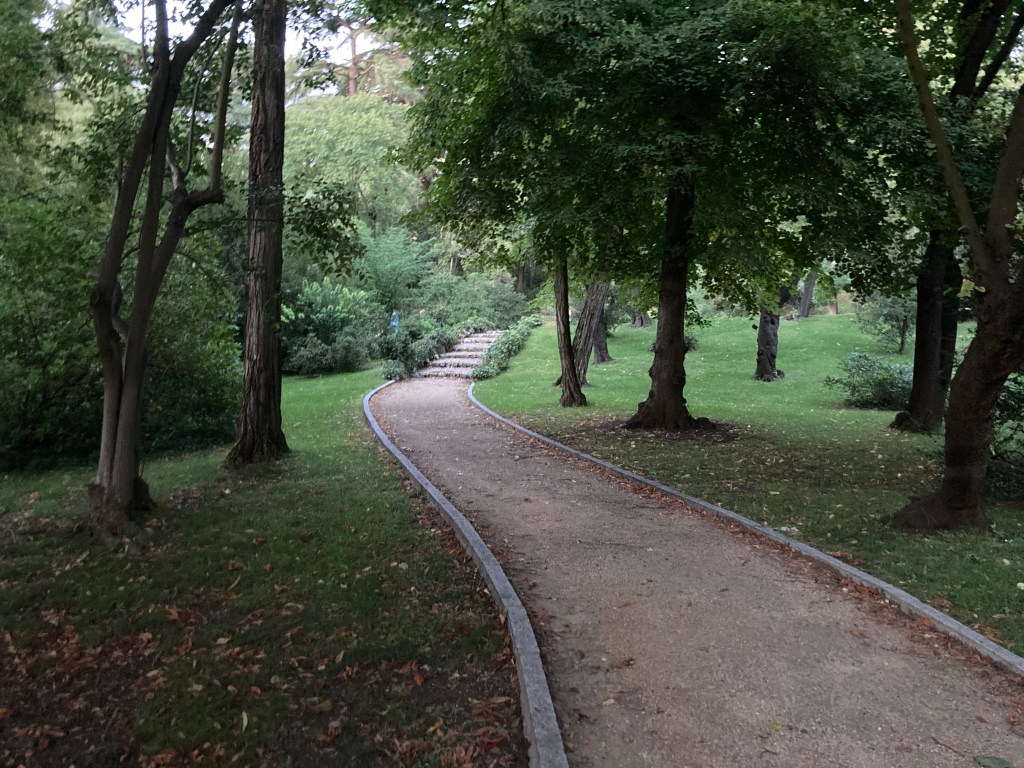 Desde allí hasta la estación del norte, hoy un intercambiador de transportes con un centro comercial (Príncipe Pío), hay un agradable paseo en el que encontramos el acceso a los Jardines del Campo del Moro, los jardines traseros del Palacio Real que todo madrileño debería tener la obligación de conocer. Entrar no cuesta nada, está muy cuidado y aunque es relativamente moderno, principios del XX, en el que uno se siente como antiguo noble recorriendo sus caminos. Es junto a los Jardines de Sabatini y la Plaza de Oriente, uno de los tres recintos verdes que rodean al Palacio y el único de los tres que no había pisado jamás.