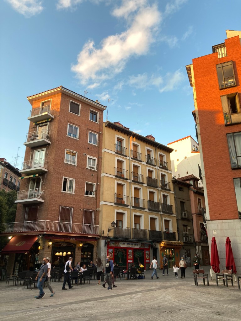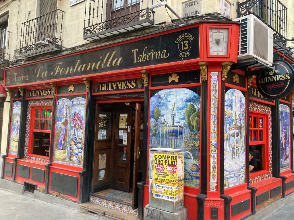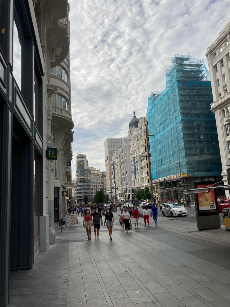 Sigamos con nuestro paseo. Podría haber optado por meterme por San Joaquín, encontrarme con H y con Belén, tomar un vino en Tipos Infames (que no tiene aún cuadro amarillo, pero lo tendrá) y llegar a mi objetivo por las Correderas alta/baja de San Pablo, pero las zapatillas que abren esta entrada estaban en una tienda próxima a Gran Vía, así que seguí por la calle que, desde el Museo Municipal y su puerta churrigueresca, recupera algo de la alegría pre-covid.