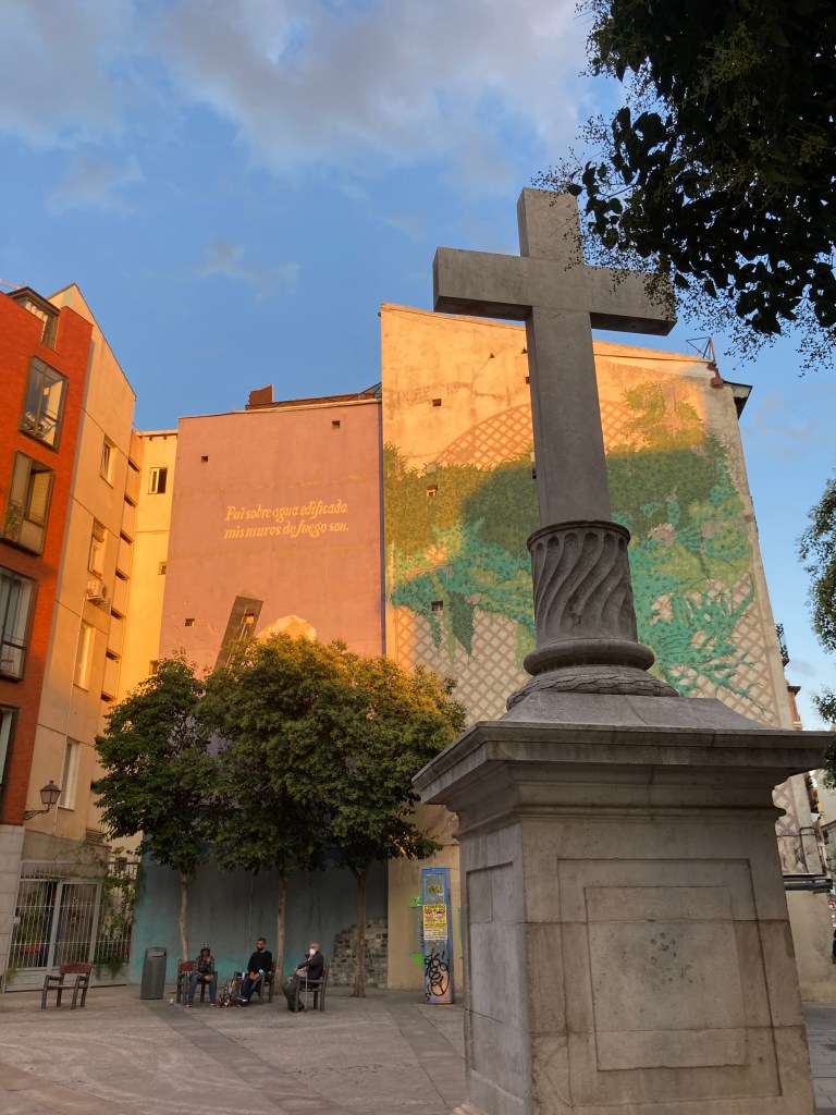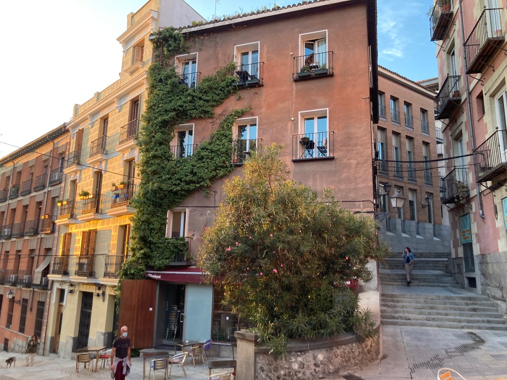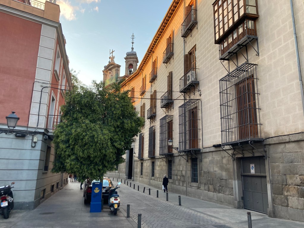 No me detendré en Gran Vía, que solo recorrí en un tramo para ver que ambiente se respiraba , y seguiré por Montera hasta Sol, que tiene la tienda de Apple cerrada y que está irreconocible con tanta tranquilidad. Hay algo de menos cola en la Mallorquina (¡Qué napolitanas y palmeras!) y se ve algo de gente ya comprando Lotería de Navidad. Subiremos Carretas hasta la Jacinto Benavente, giraremos por Concepción Jerónima, luego por Conde de Romanones y después por Colegiata porque mi objetivo es llegar a la calle Segovia. Os comento que este trayecto merece la pena hacerlo mirando, de vez en cuando, al cielo, pues hay puntos en los que se ven perfectamente las grandes cúpulas de San Isidro, San Andrés, San Francisco El Grande o La Catedral de la Almudena.