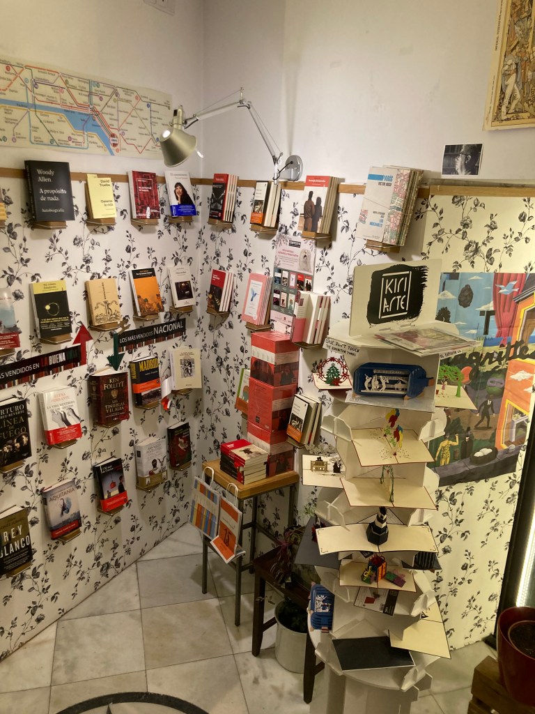 La librería ocupa una esquina que es un remanso de paz pese a estar situada en pleno centro de Madrid. Puedes tomarte algo en un rinconcito de lo más acogedor, rodeado de libros o simplemente perderte entre sus estanterías como me gusta a mi perderme horas y horas. Existe desde 2008 y tiene, cuando la situación actual lo permite, una incesante actividad cultural de la que, muy mal por mí, nunca he participado. Sé de ella porque la sigo en redes sociales y porque fue una de las que me fijé cuando hice mi proyecto de blog de librerías en el curso de Blogs de la UNED.