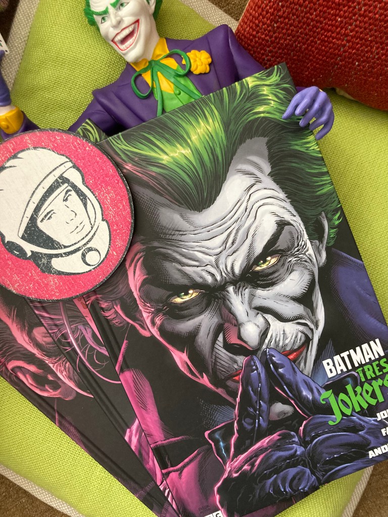 Batman Tres Jokers es una continuación de aquella historia, con un grafismo similar e incluyendo a personajes del universo del murciélago muy tocados por el único personaje del cómic con dos Oscars. Barbara Gordon, Bat Girl, quedó paralitica en La Broma Asesina y Jason Todd, el segundo Robin, «murió» (a petición de los lectores) en Una Muerte en la Familia, ellos junto al bueno de Bruce Wayne serán los encargados de enfrentarse a tres Jokers, el criminal, el payaso y el humorista en una historia trepidante y oscura que se lee con las ganas que le ponemos al tema los lectores de comics cuando algo nos gusta mucho.