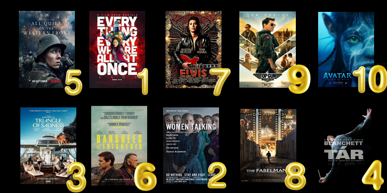 Cruise, Cameron y Spielberg, pesos pesados de la industria compartiendo nominación en 2023. Es una película correcta con momentos muy tiernos y en los que Michelle Williams brilla en cada plano en el que sale. Es una película bonita pero me dejó algo frio, nada que ver con su versión de West Side Story el año pasado.
