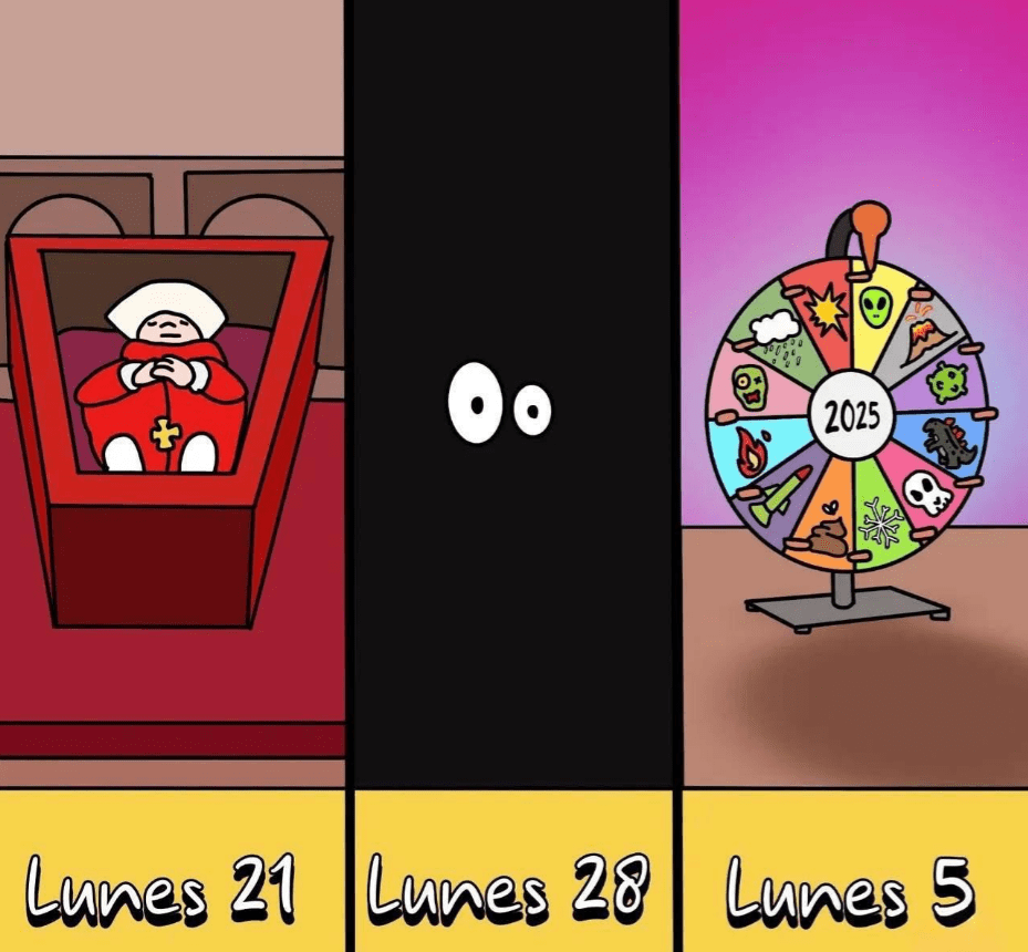 ¿Cuántos memes os llegaron sobre el lunes 5 de mayo? Este, que no sé de quién es, es de los mejores. Con todo lo que ha pasado en los últimos años, parece que vivimos en una rueda de la fortuna que no para. Ayer les ha tocado a los viajeros del AVE Madrid – Sevilla por el robo de cables. A ver el próximo lunes.